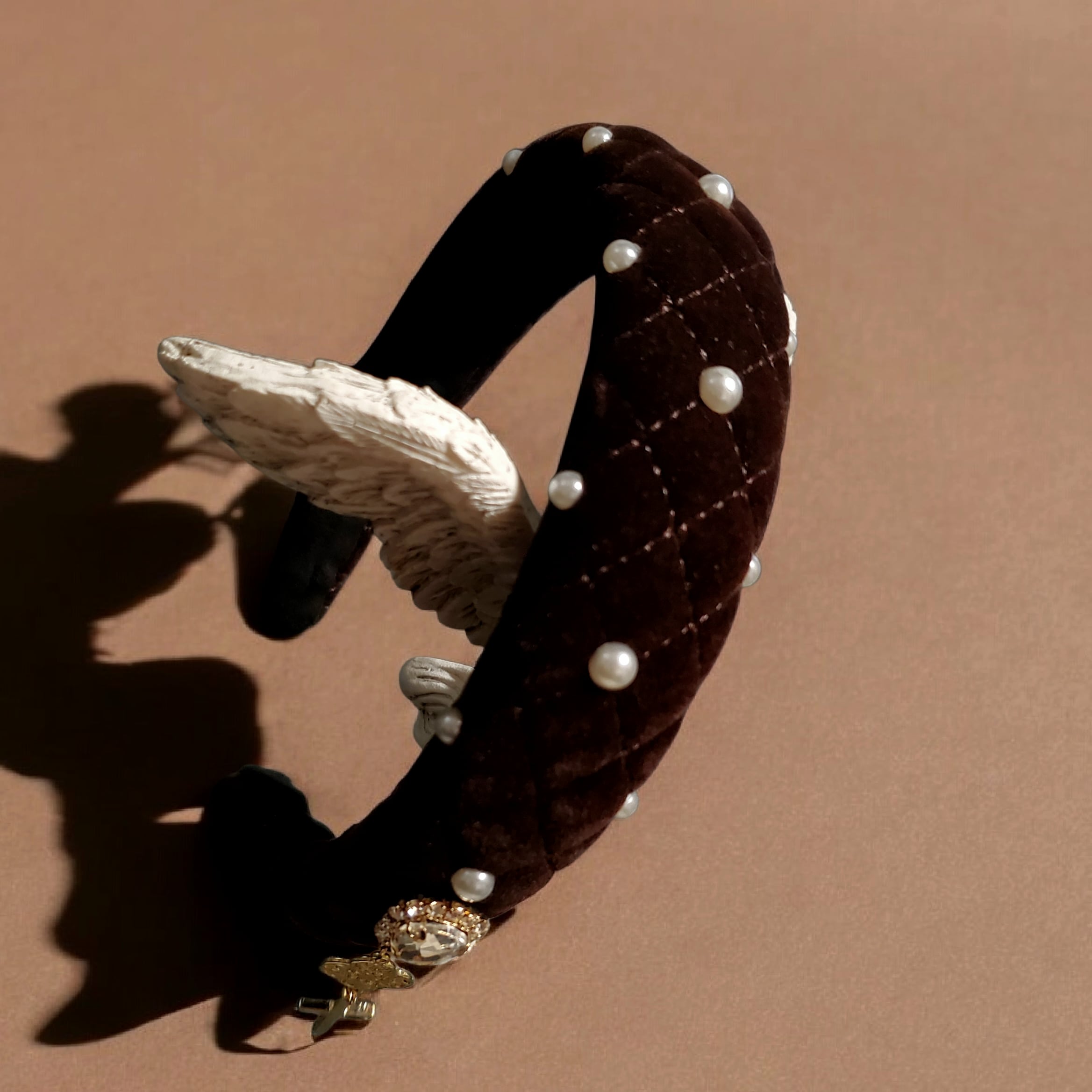 左右同じチャームが動くたびにゆらゆら揺れます ベース:キルティング ベロア ブラックorブラウン