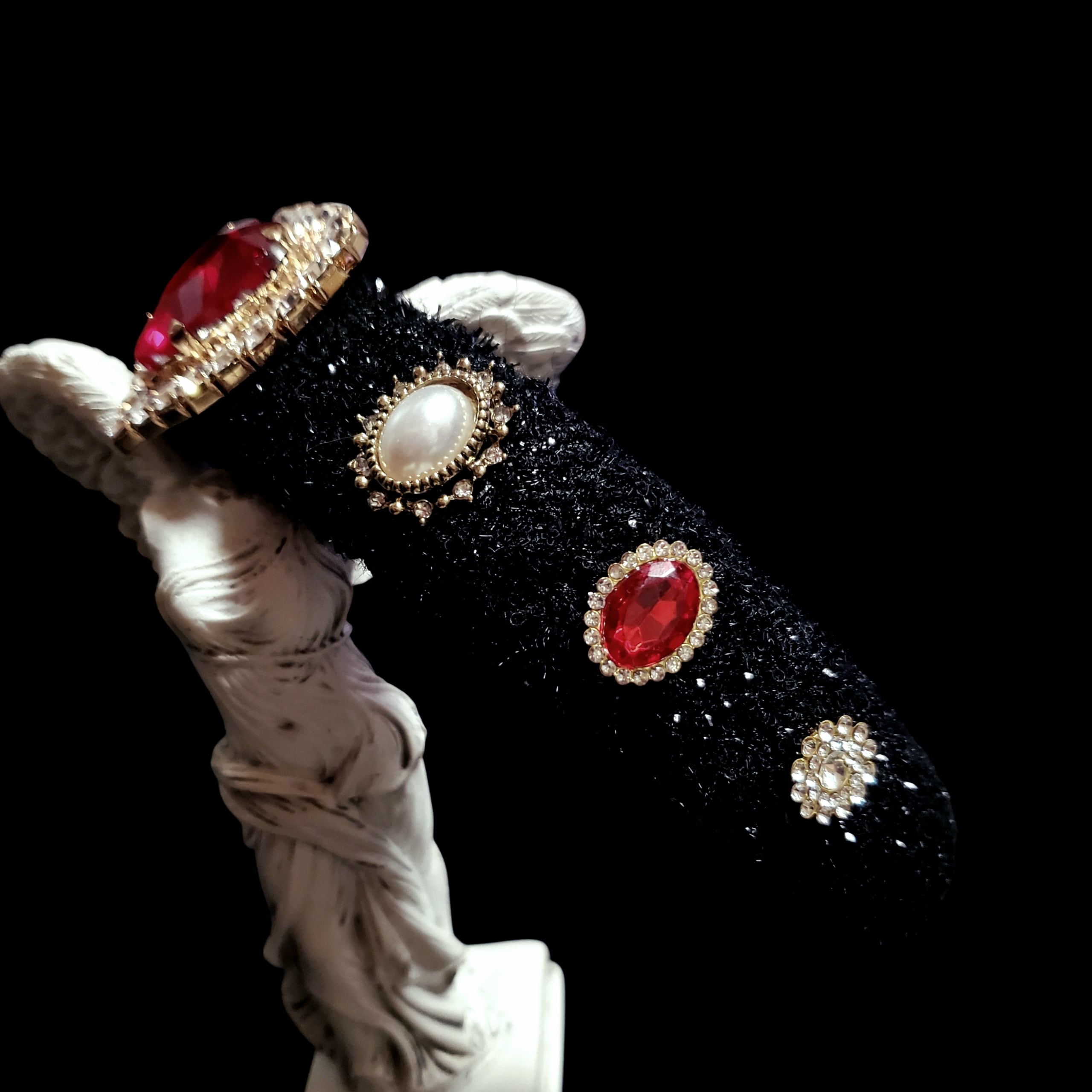 ベース:ブラック ラメ 装飾は左右対称に施してあります