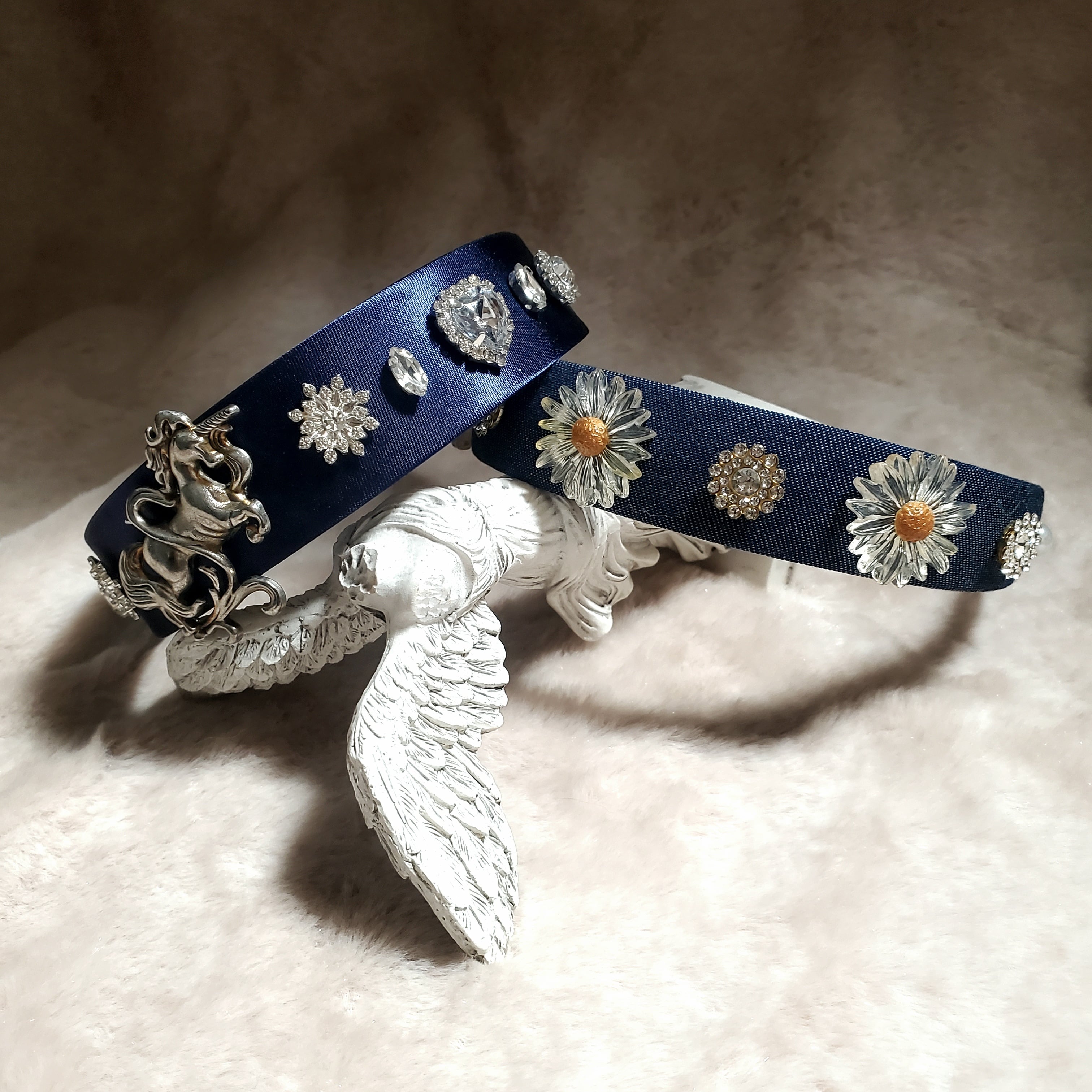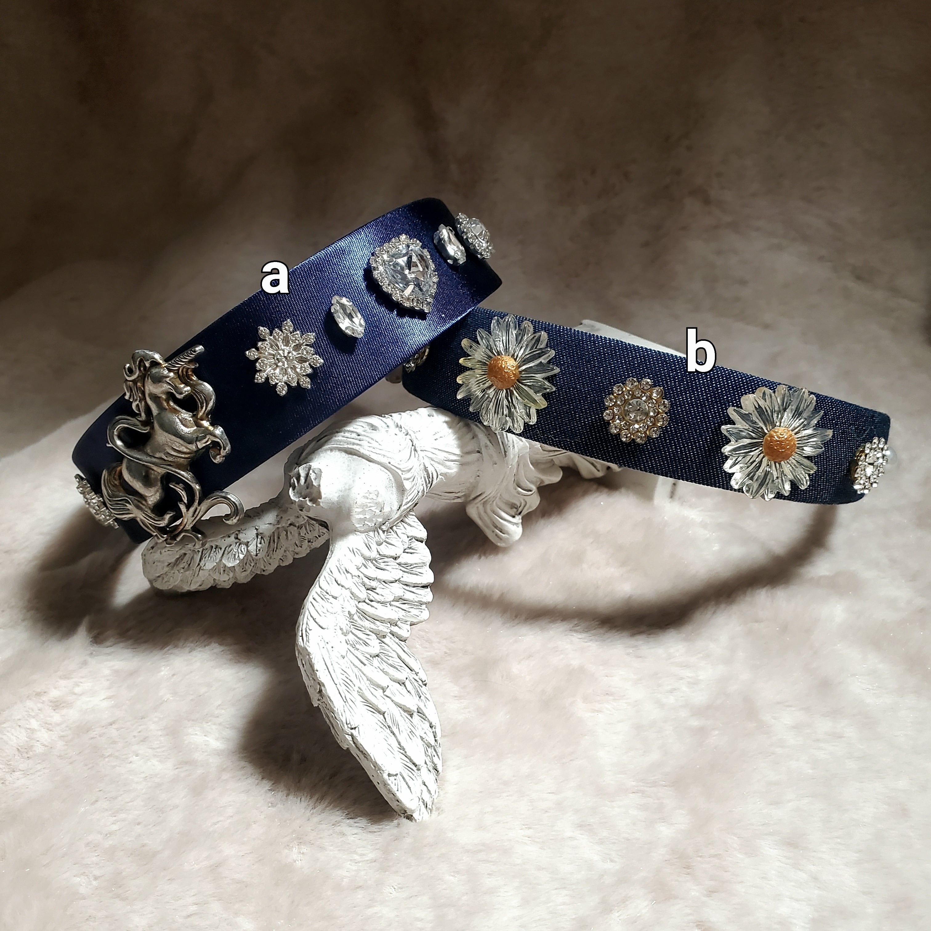 ベース a:サテン ネイビー b:デニム 装飾 a:アシンメトリー b:シンメトリー