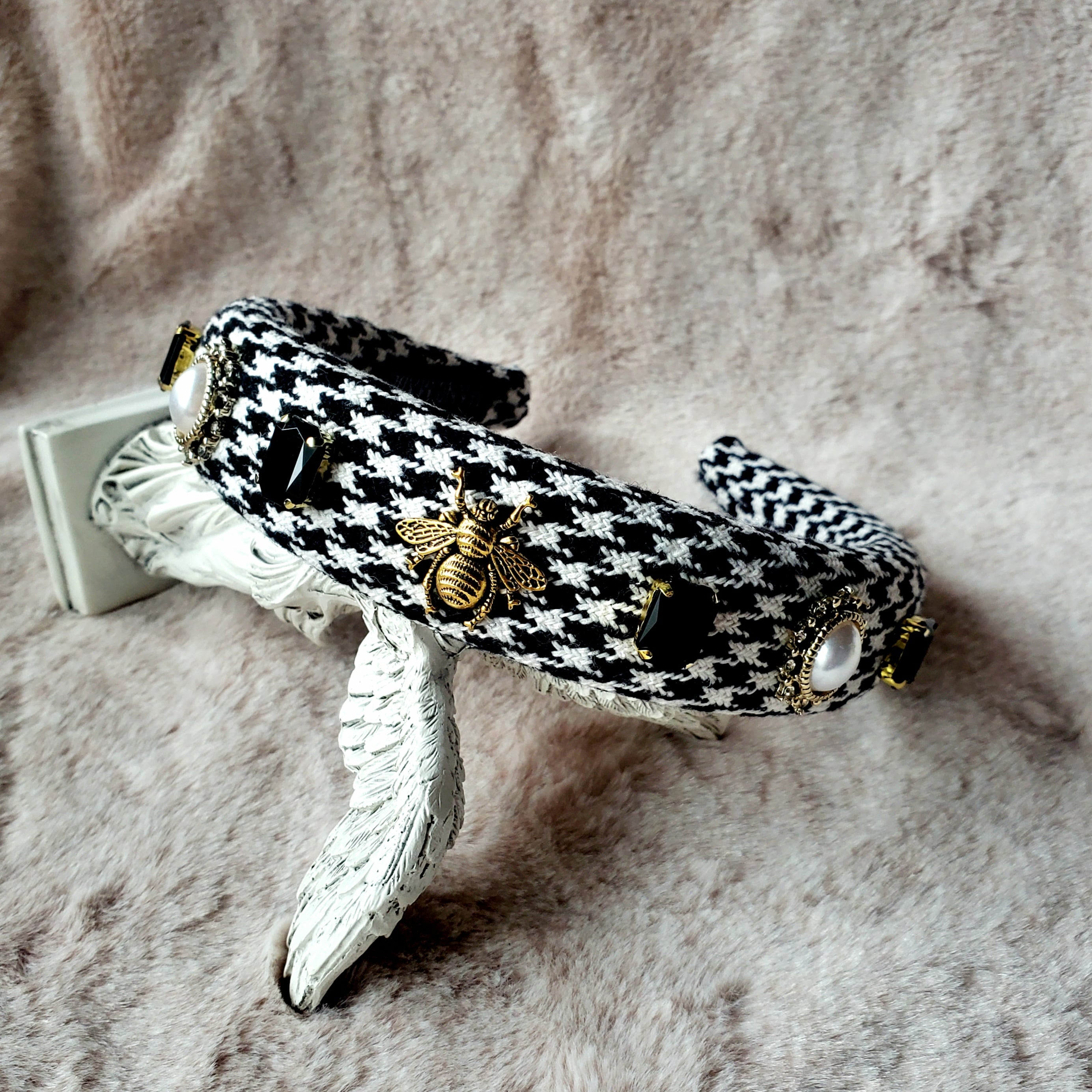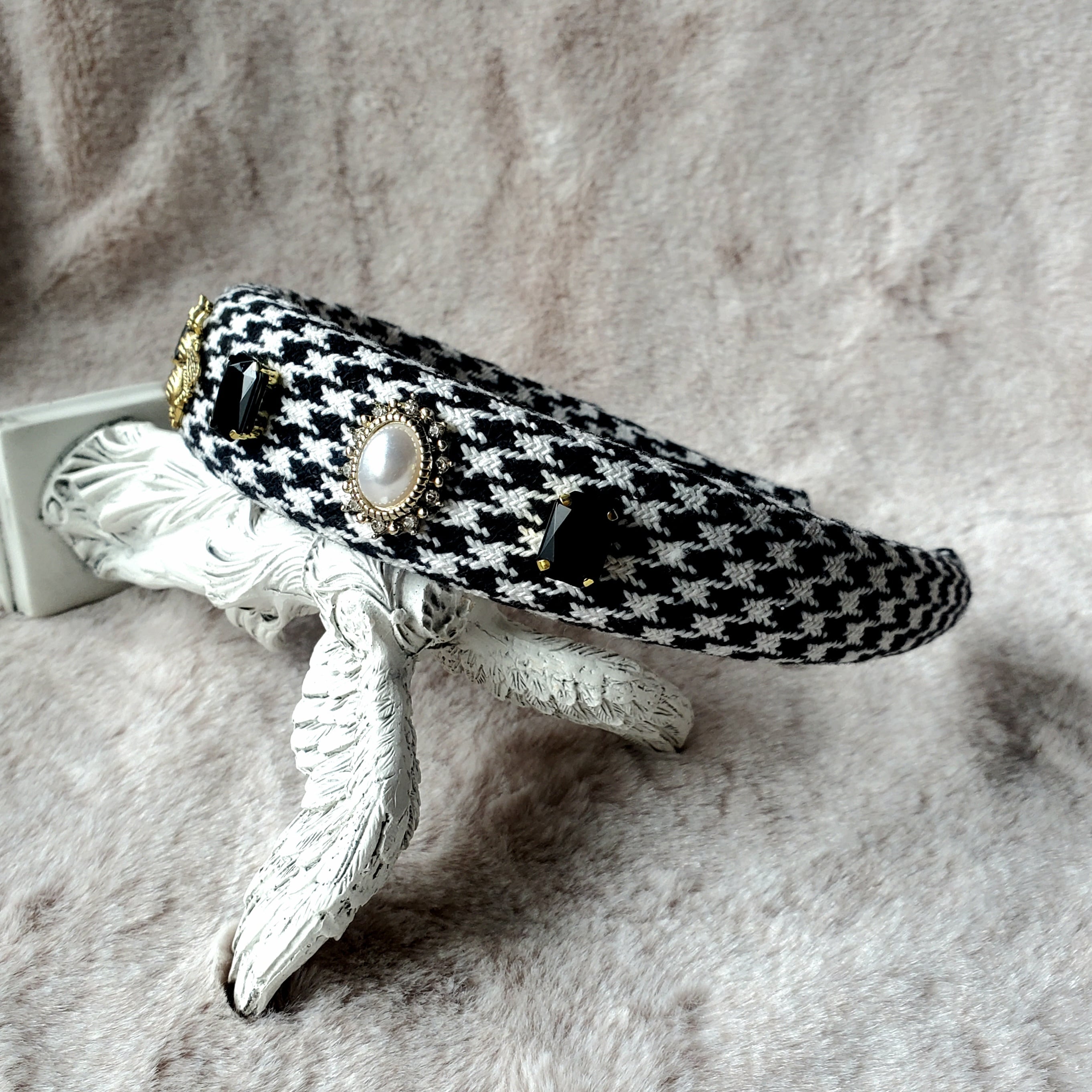 ベース:モノクロ千鳥格子 ふんわり綿入り 装飾:シンメトリー